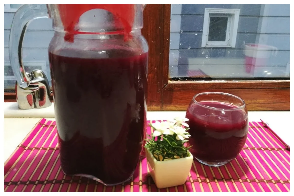 - بالتالي يتم خلط العصير لكي يصبح متجانس وتختفي حبات الزبيب.