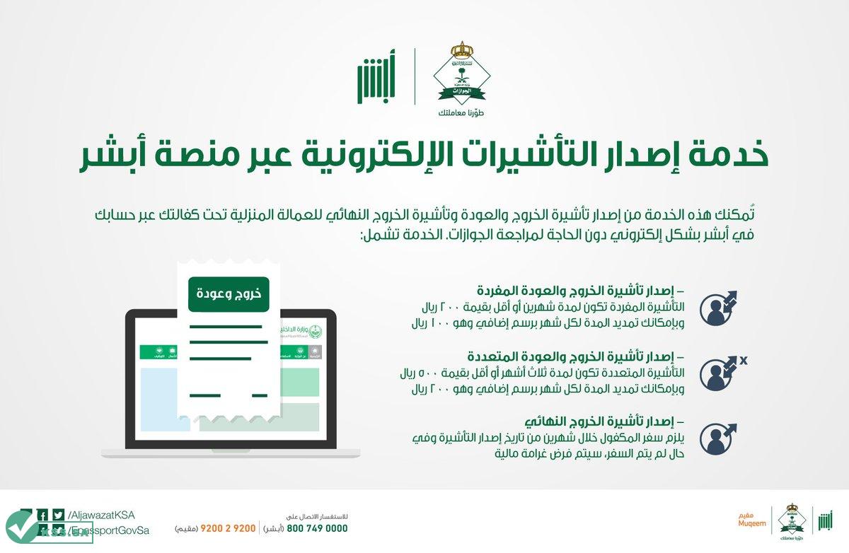 - إذا انتهت فترة سماح تأشيرة الخروج والعودة وكان الشخص خارج المملكة يجب أن يبقى خارج المملكة حتى تنتهي مدة التأشيرة.