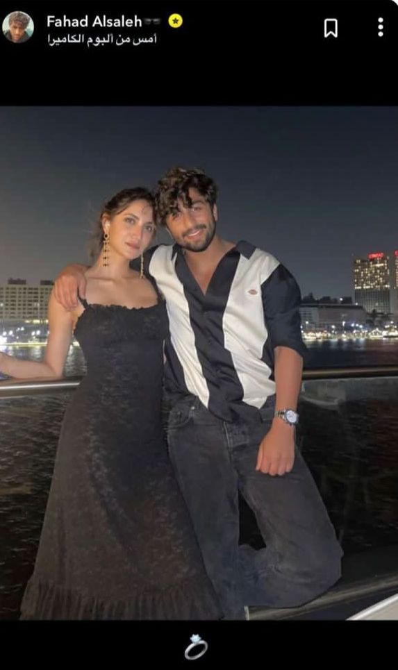 - وتم ذلك من خلال مشاركة فهد مع صورة تجمعه بروان مع رمز تعبيري لخاتم خطوبة في اسفل الصورة عبر السناب شات.