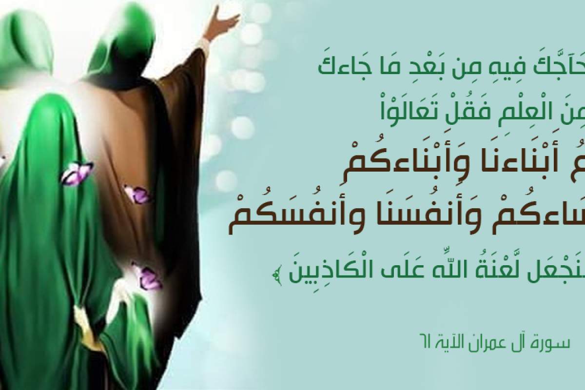 - قال تعالى: “فَمَنْ حَآجَّكَ فِيهِ مِن بَعْدِ مَا جَاءكَ مِنَ الْعِلْمِ فَقُلْ تَعَالَوْاْ نَدْعُ أَبْنَاءنَا وَأَبْنَاءكُمْ وَنِسَاءنَا وَنِسَاءكُمْ وَأَنفُسَنَا وأَنفُسَكُمْ ثُمَّ نَبْتَهِلْ فَنَجْعَل لَّعْنَةُ اللّهِ عَلَى الْكَاذِبِينَ” سورة آل عمران.