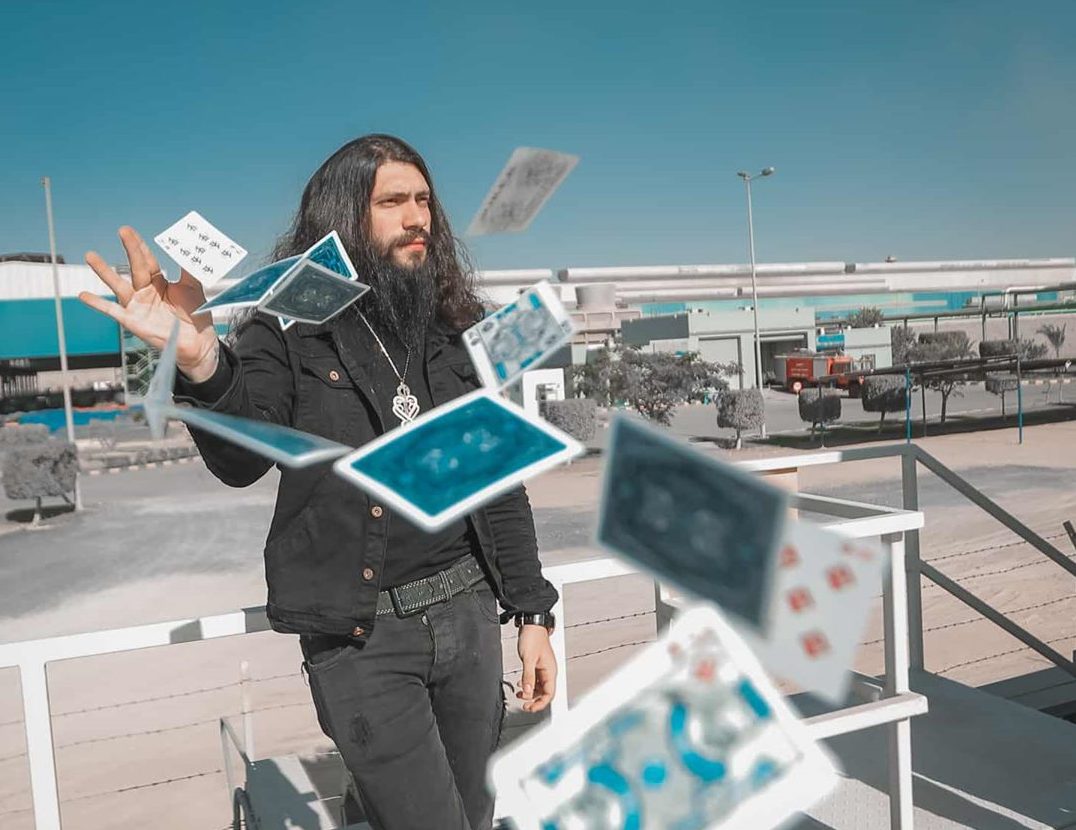 - علاوة على ذلك كان يقوم أباه بألعاب خفة اليد أمامه فشاهد على التلفاز فيديو وقام بتقليده بعد أن علمه والده ونجح به فكان في تغير الشدة والبطاقات بها.