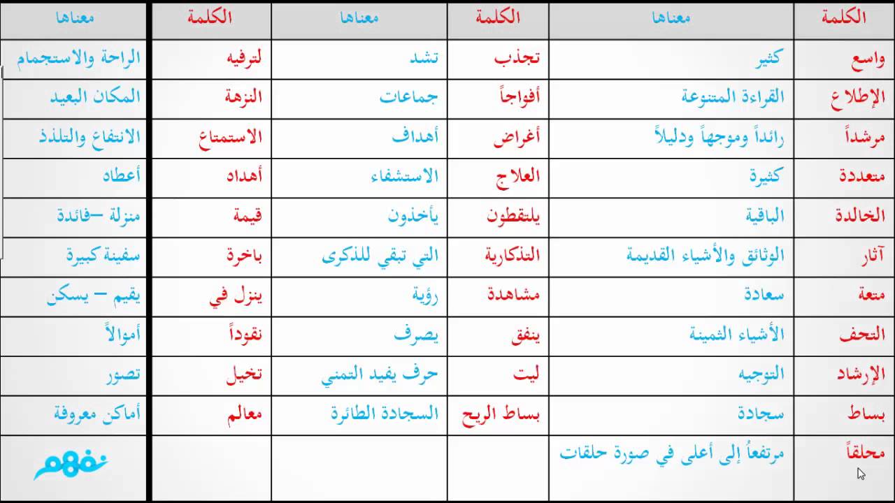 شاهد أيضا: كلمات اللغة العربية الفصحى ومعانيها