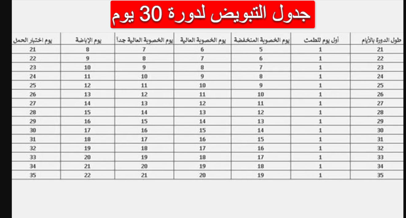 طريقة حساب أيام التبويض