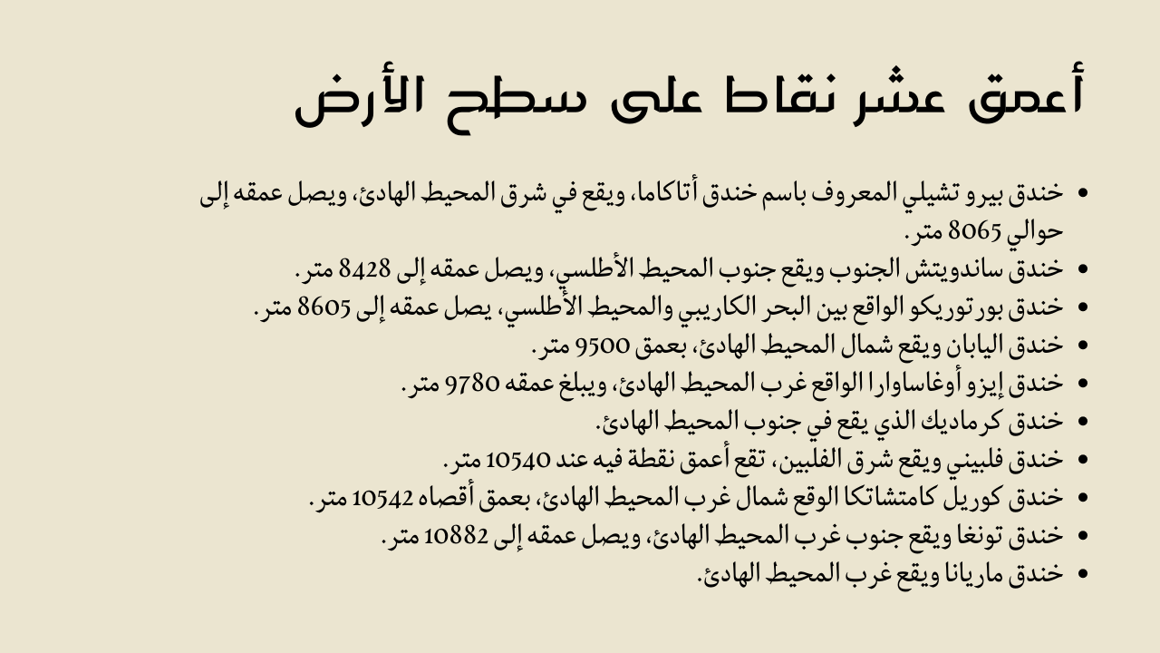 - تعد تشالنجر ديب والتي تقع في خندق ماريانا أعمق نقطة على وجه الأرض.