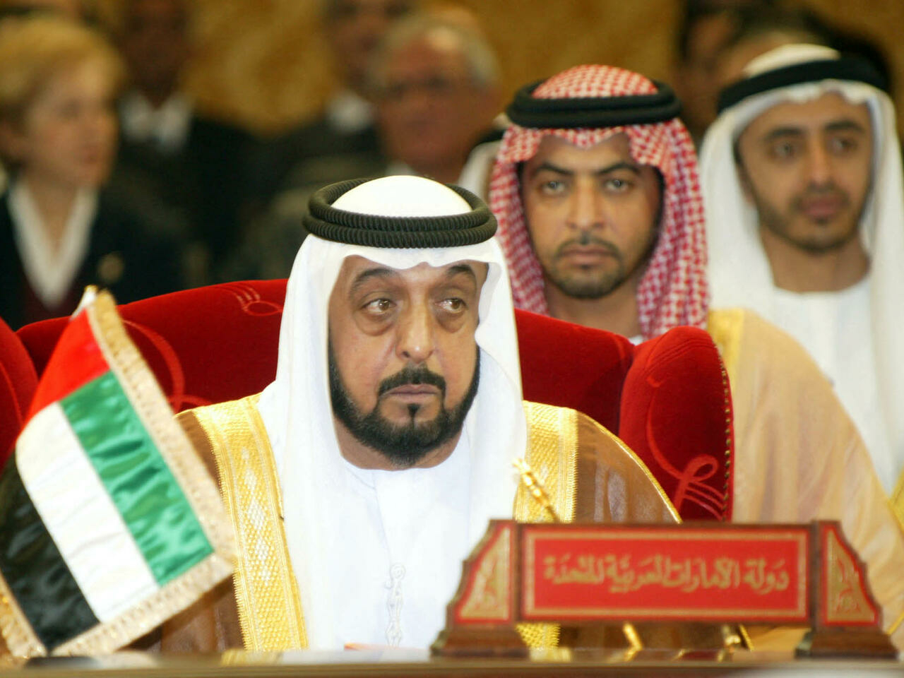 (FILES) In this file photo taken on December 20, 2004 the United Arab Emirates’s President Sheikh Khalifa bin Zayed al-Nahyan attends the six-nation Gulf Cooperation Council (GCC) summit in Manama. – Sheikh Khalifa bin Zayed died on May 13, 2025, official media said. (Photo by ADAM JAN / AFP)