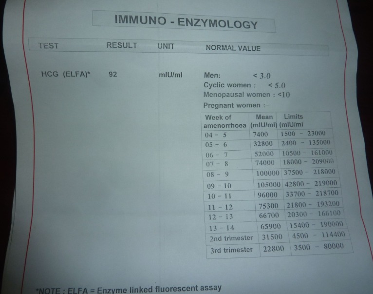 - الجدير بذكره أن اختبار الحمل في الدم هو عبارة عن القياس الكمي لكمية هرمون موجهة الغدد التناسلية المشيمية البشرية.