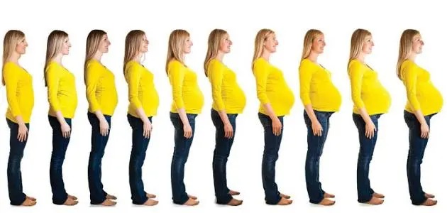 - ومع البداية لكل شهر يزداد الحجم، والطول للجنين، وبناء على ذلك يحدث الزيادة في البطن في حجمها، وتصبح هي أكبر.