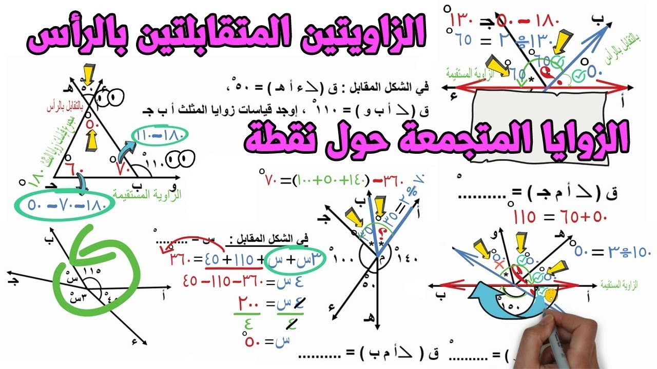 - وفي هذا السياق نقدم لكم شرح درس الزوايا المتجمعة حول نقطة، وهو موضح في الفيديو الآتي: