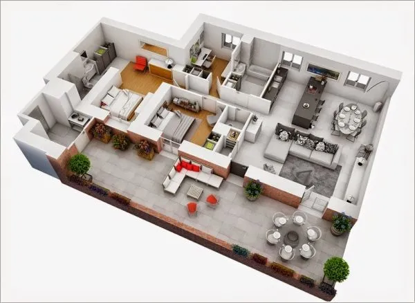 إن التخطيط الجيد يعتمد على مساحة المنزل، بحيث يتم تخطيط جزء من هذه المساحة للعيش في الهواء الطلق، وذلك بتصميم شرفة أمامية متسعة، أو منصة خلفة، وربما يتم تصميم حديقة منزلية خارجية بشكل متناسق يؤمن الاستجمام لأصحاب المنزل.