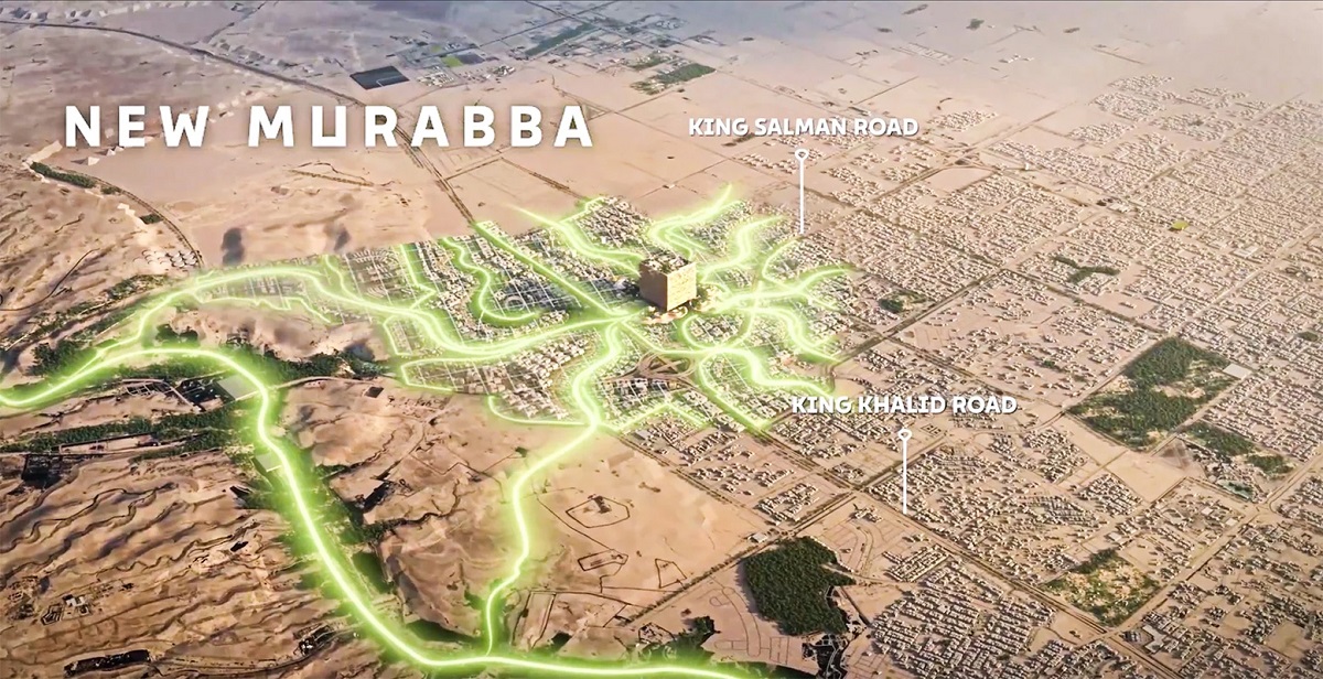 - حيث ان مشروع المربع الجديد يقع في تقاطع طريقي الملك سلمان والملك خالد شمال غرب العاصمة السعودية في الرياض.