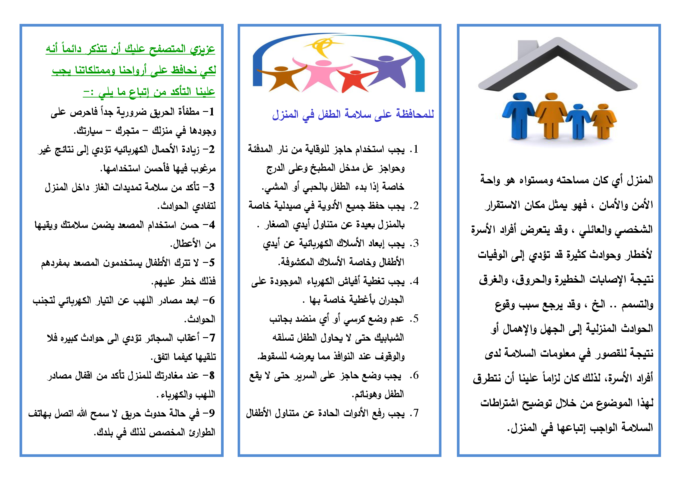 تعد حماية الأرواح وكافة الممتلكات والخصوصيات من أبرز الأعمال التي يسعى الدفاع المدني جاهداً لتحقيقها بصورة تتسم بالكفاءة والمزايا الجيدة التي منها تنال على دعم وتعزيز وشكر من المواطنين في كافة المدن والمناطق، ولهذا السبب فقد اتسم جهاز الدفاع المدني بسمات جعلته من أعلى الأجهزة بل وأهمها، وكافة الخدمات التي يقدمها لا يستطيع أحد أن يتغاضى عنها ولا حتى يتجاهلها، ومن هذا المنطلق نقدم لكم مطويات عن اليوم العالمي للدفاع المدني وهي: