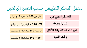 - بعد تناول الطعام (بعد ساعتين على الأقل من الأكل): السكر الطبيعي يكون عادة أقل من 140 ملغ/ديسيلتر (7.8 مليمول/لتر).
