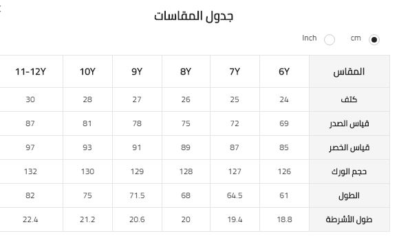 - بعدها افتح دليل موقع شي ان وحدد المقاس المناسب، مقارنة بالمقاسات الأوروبية أو الأمريكية.