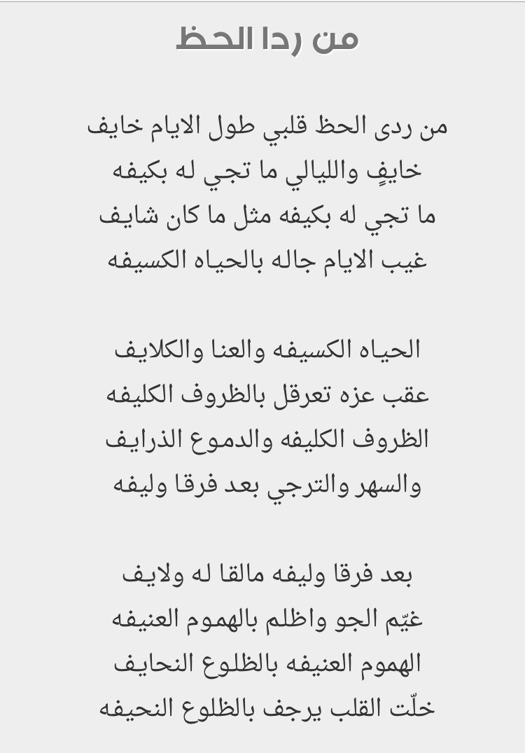 من ردى الحظ قلبي طول الأيام خايف كلمات