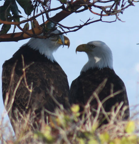 - عندما تحيط بها مجموعة من النسور الذكور ترمي الأنثى عصا، حيث تتدافع النسور لالتقاطها قبل أن يسقط على الأرض.