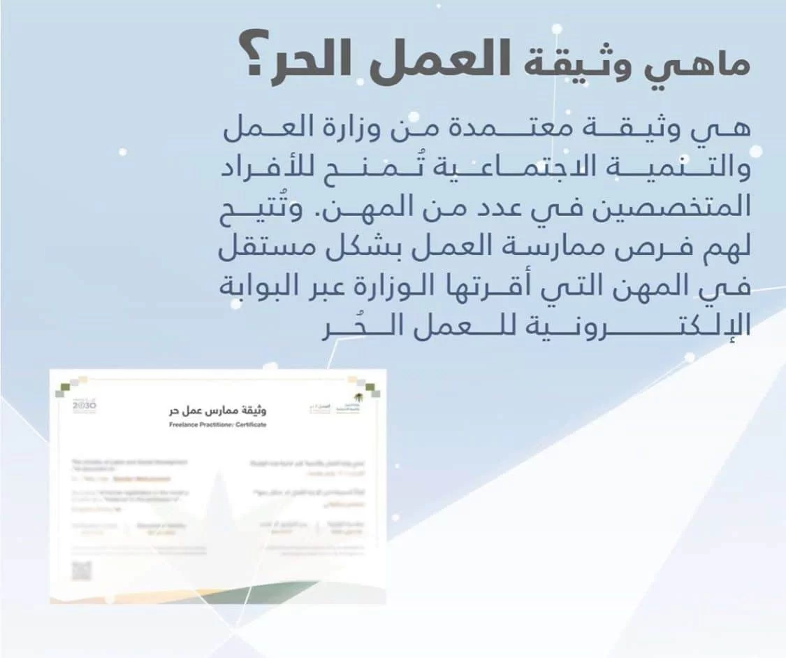 طريقة اصدار وثيقة العمل الحر في السعودية