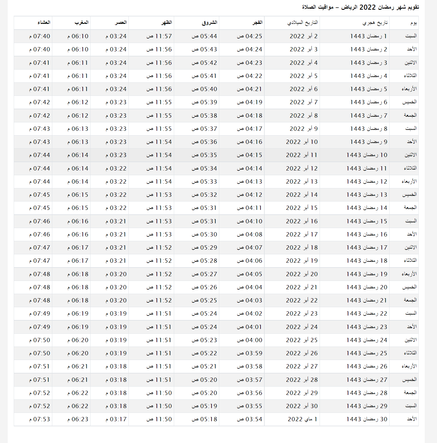 - ويوم 22 رمضان يكون وقت أذان الفجر 04:02، ووقت أذان المغرب 06:20.