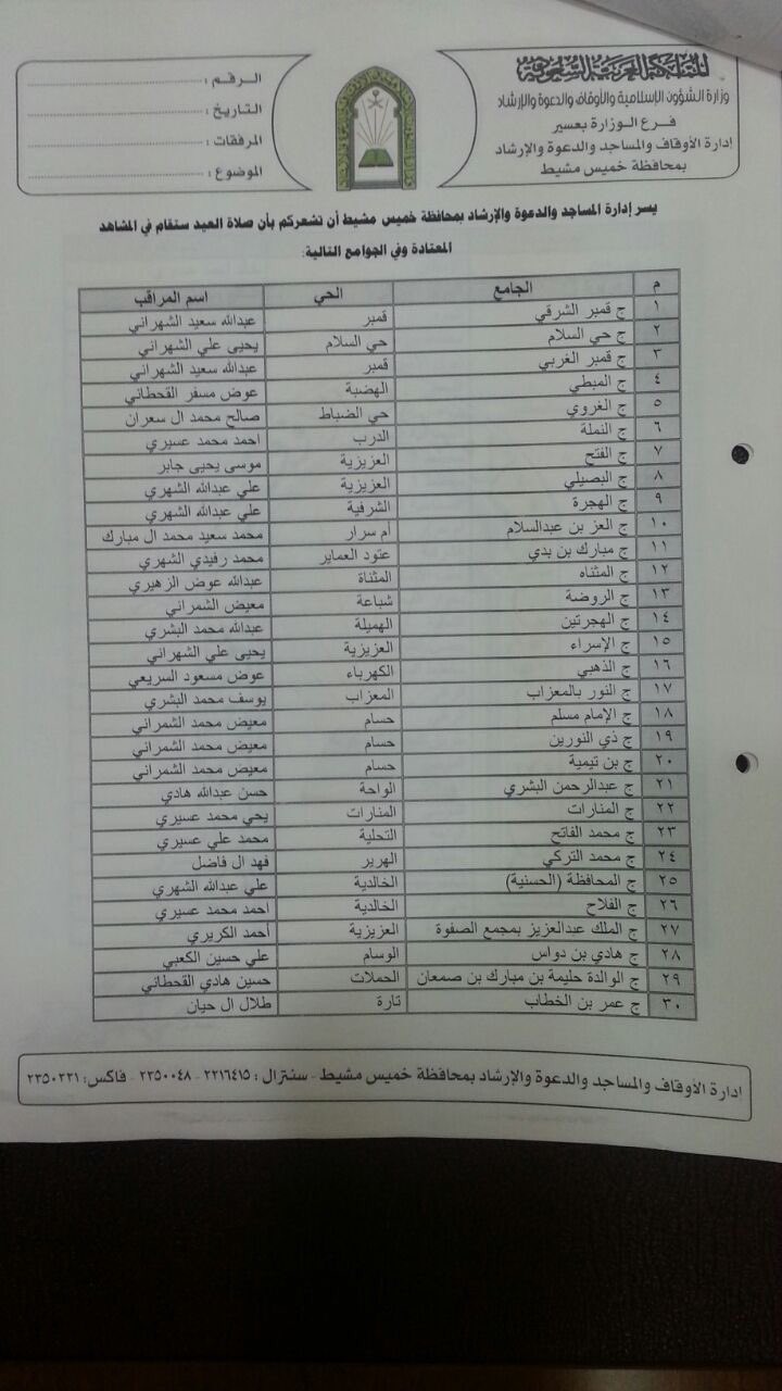 أماكن وموعد صلاة عيد الفطر في خميس مشيط 1446