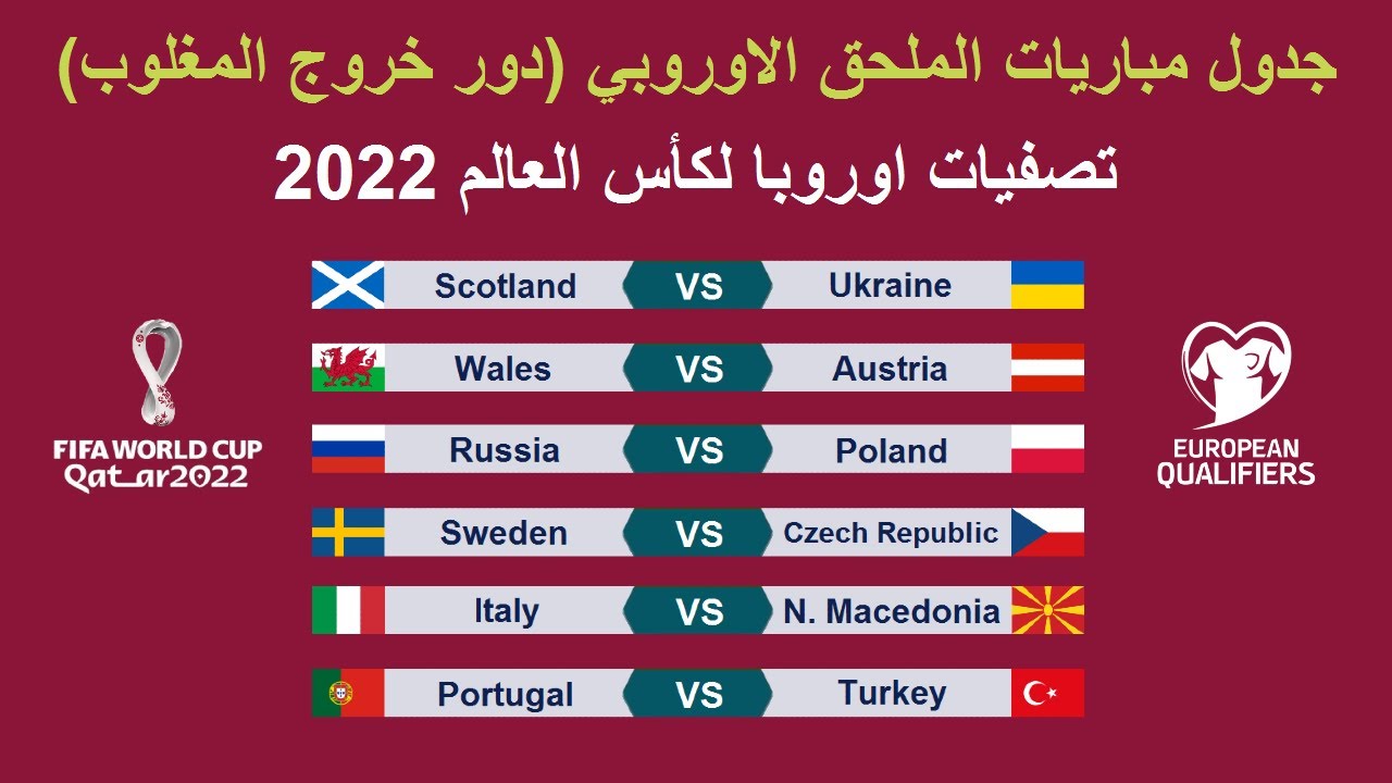متى موعد مباريات الملحق الاوروبي 2025، بالطبع تابعنا عن كثب في الآونة الأخيرة، مباريات كاس العالم. والتي تم عقدها في دولة قطر، وبناء علي ذلك، تم التنافس علي لقب كاس العالم، والذي جاء من خلال عدة جولات تنافسية. ونتيجة لذلك، انتقل العالم الي مباريات المحلق الأوروبي. ومن الجدير بالذكر، ان الملحق يأتي بتنافس اثني عشر منتخبا، تأهلوا للملحق الأوروبي، للحصول علي ثلاثة مقاعد تنافسية، للحصول علي لقب كاس العالم للعام 2025.