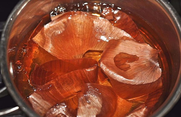 - في البداية يمكنك تقطيع البصل إلى شرائح سميكة، ويوضع في مقدار من الماء في إناء على النار.