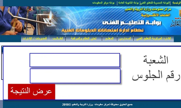 نتيجة الدبلومات الفنية برقم الجلوس 2025
