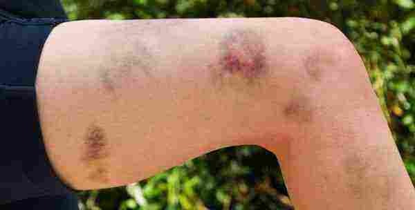 - الظهور للكدمات التي تكون حمراء أو أرجوانية اللون النقط التي تكون حمراء، وهي التي تعرف باسم بيتيشيا.