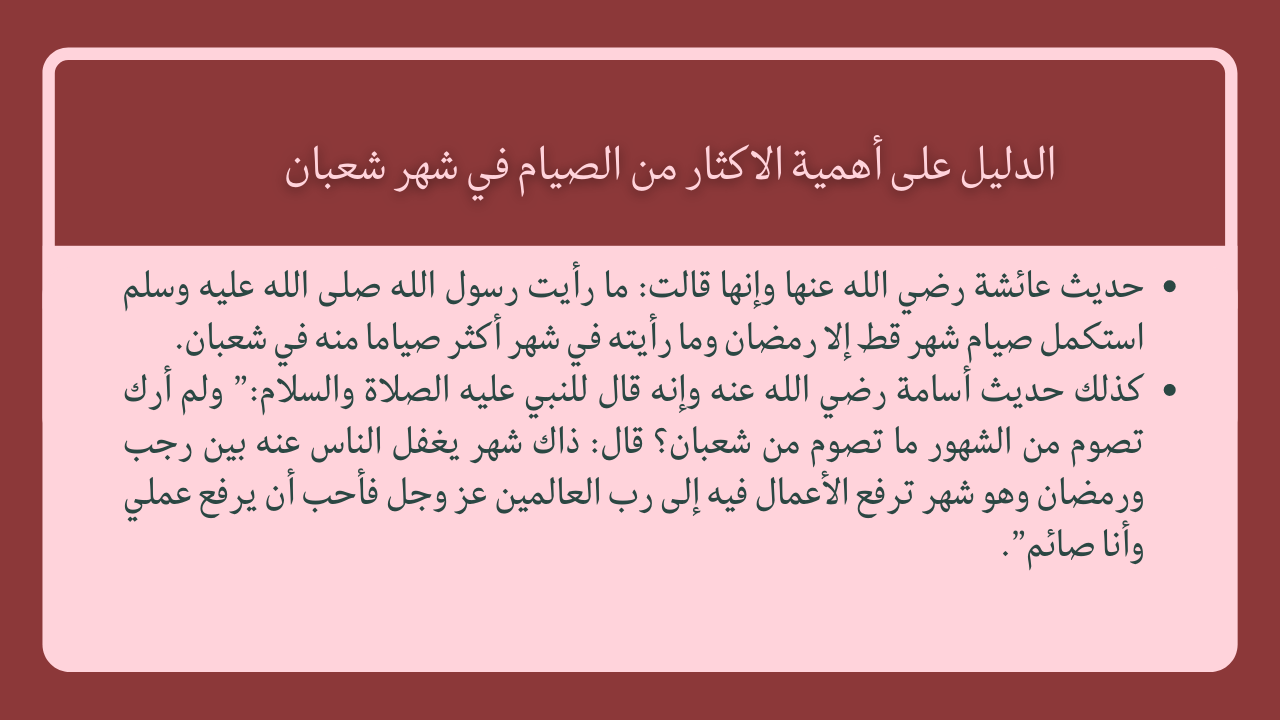 - مواعيد صيام شهر شعبان تكون في النصف من شعبان أي: