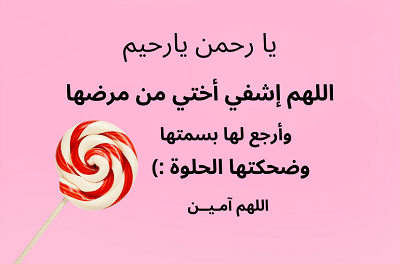 - اللهم إشفي أختي من مرضها وأرجع لها بسمتها وضحكتها الحلوة، يارب كن معها.