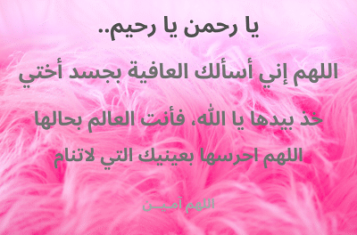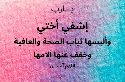 - يارب إشفي أختي وألبسها ثياب الصحة والعافية، وخفف عنها آلامها.