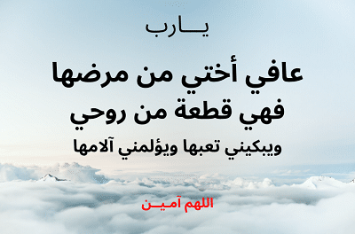 – يارب لي أخت هي أنسي وسعدي، وجنتي في دنياي وعدتي لأخرتي، أسألك يا الله أن تحفظها من كل شر، وتكتب لها الشفاء العاجل وتلبسها ثوب الصحة والعافية.