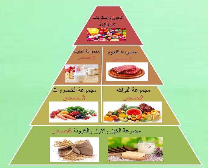 - الزيوت والدهون، هي التي تمثل قمة الهرم ولذلك فهي المجموعة التي يكون الجسم بحاجة إليها بشكل محدود.